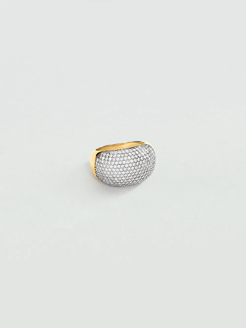 El anillo ancho Danae de Agatha Paris es una pieza de impacto pensada para convertirse en protagonista absoluto de la mano. Realizado en metal con acabado dorado, está completamente cubierto de circonitas que crean una superficie brillante y uniforme. Su diseño tipo banda, en talla 56, envuelve el dedo con un efecto joya contundente y elegante, perfecto para ocasiones especiales o para quienes aman los anillos llamativos.