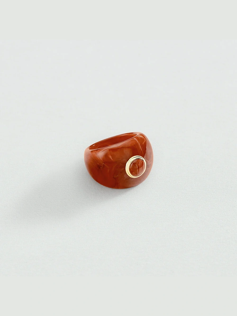 Sortija de acetato con cabujón en tonalidad rojiza coordinada con la base. Diseño irresistible de la colección BE by María Pombo imposible de resistir esta temporada. Esta joya se convierte en pieza protagonista de cualquier estilismo con carácter. Perfecto para combinar con collar largo y criollas en tono coordinado creando match total. Anillo francés con carácter único y estilo inconfundible.