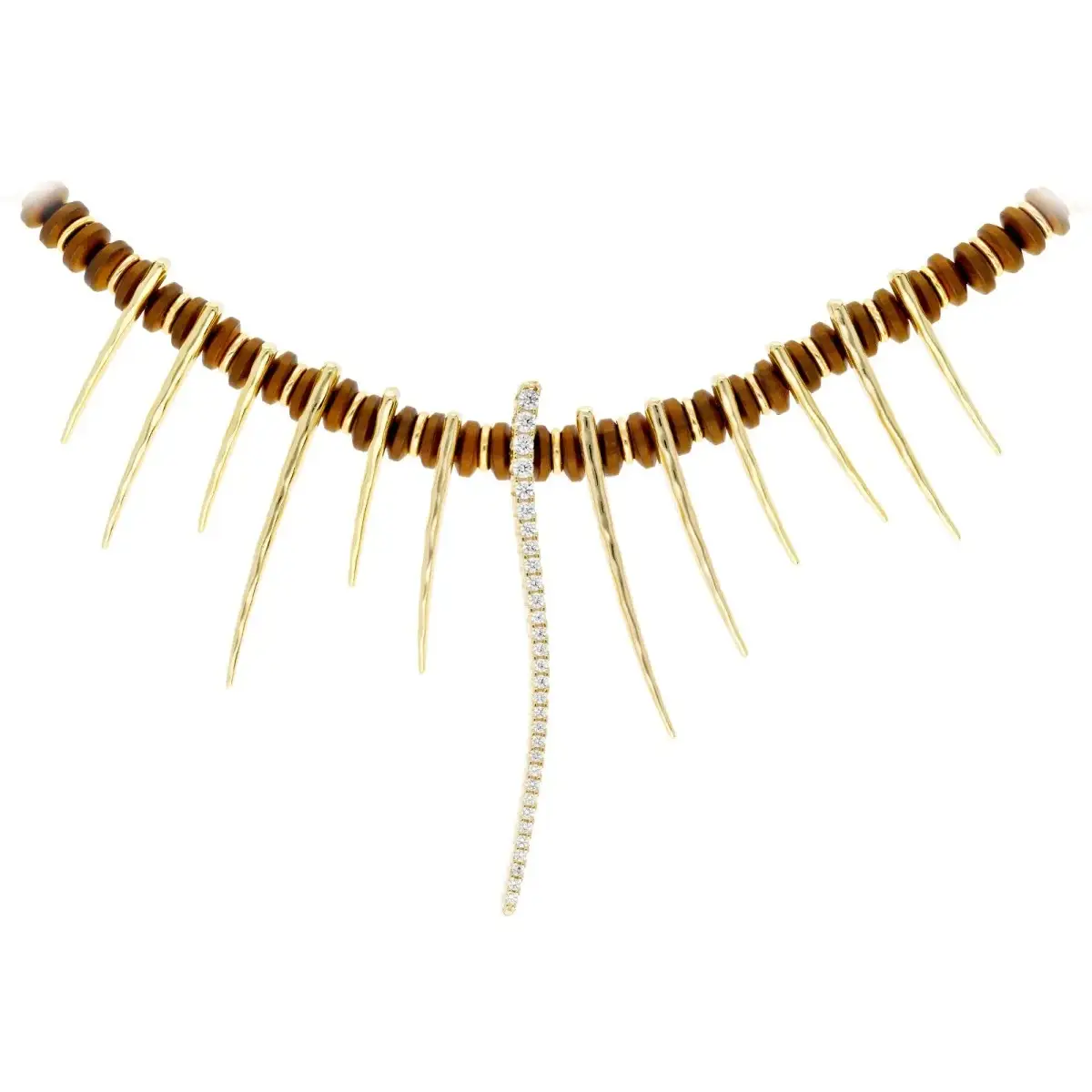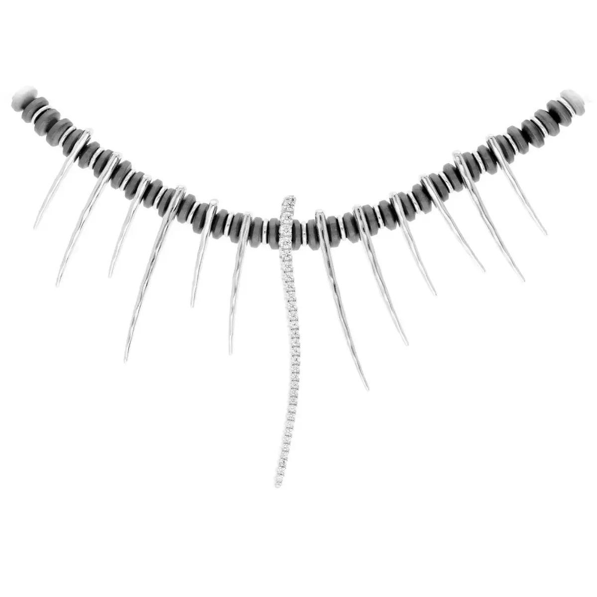 Choker de la firma Marina García elaborado en plata de ley 925 con baño de oro amarillo de 18kt. Decorado con hematites y circonitas blancas que aportan brillo y sofisticación. Ideal para destacar en cualquier ocasión.