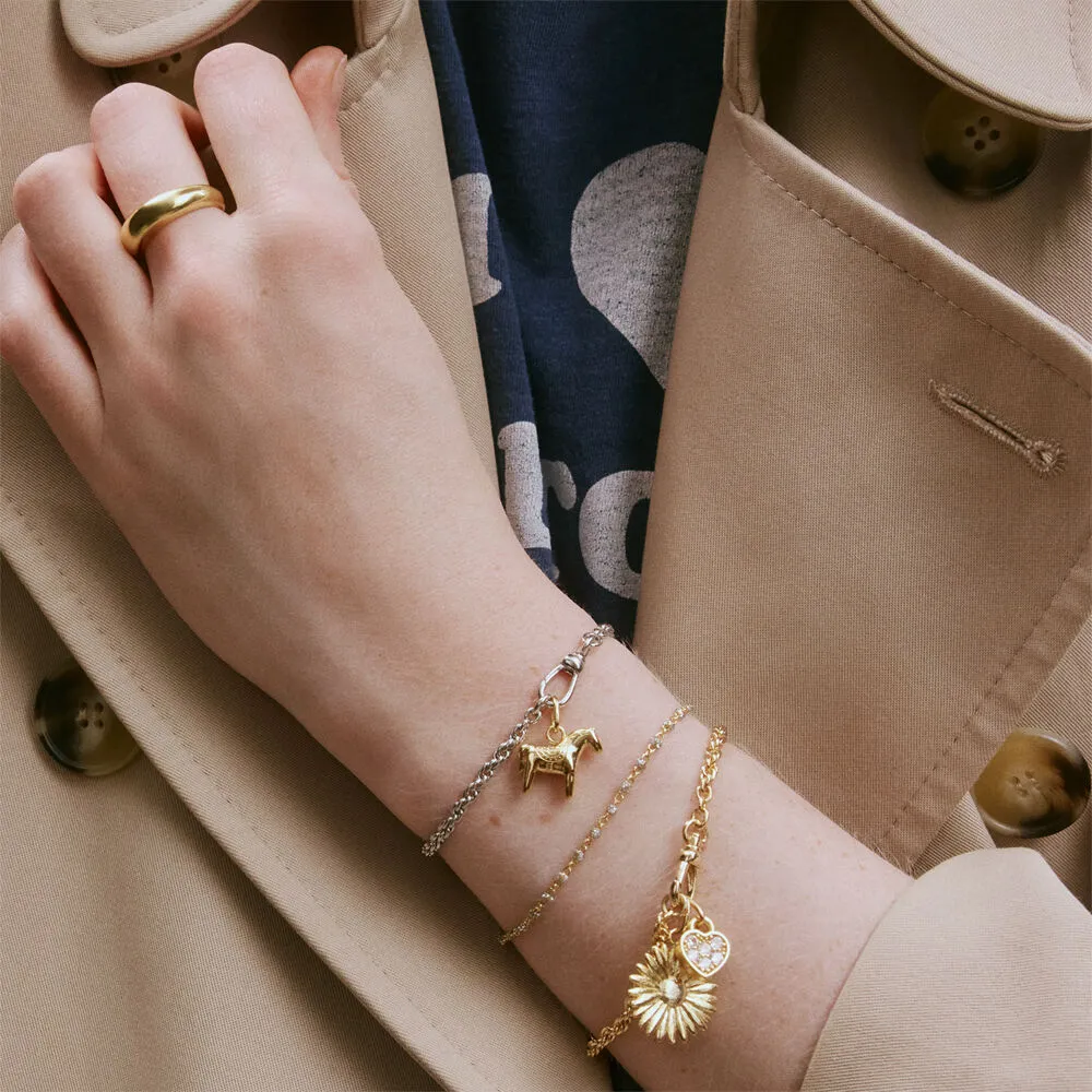 Colgante floral con baño de oro para quienes expresan su feminidad a través de los detalles. Delicado y versátil, funciona tanto como pieza única como en combinación con otros charms de la colección. Forma parte del universo Talismans de AGATHA, una propuesta de joyería modular que te invita a crear piezas completamente personales. Elige tu base favorita entre criollas, pulsera o collar, añade este colgante y cualquier otro que te inspire, y construye una joya que habla de quién eres sin necesidad de palabras.