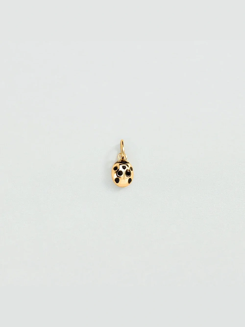 Charm con silueta de mariquita bañado en oro y lunares en esmalte negro para un toque de color y personalidad en tu joyería. Su diseño original y llamativo lo convierte en uno de esos accesorios que no pasan desapercibidos. Forma parte de la colección Talismans de AGATHA, un sistema de joyería personalizable donde tú decides: elige tu base entre criollas, pulsera o collar, añade los colgantes que mejor te representen y crea una combinación que cambia con tu estado de ánimo y evoluciona con tu estilo día a día.