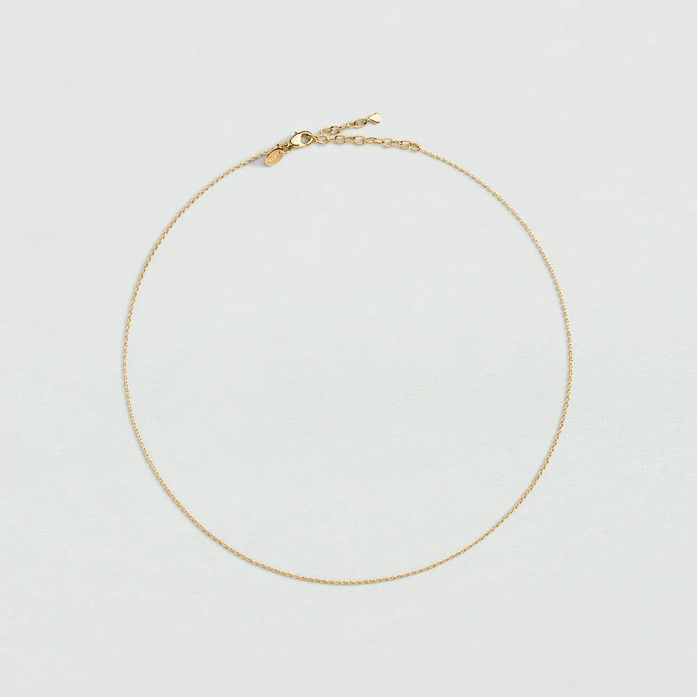 Cadena midi con acabado dorado para personalizar con amuletos Lucky. Diseño forçat ligero, largo de 390 mm con extensión de 50 mm; perfecta para looks diarios y combinaciones en capas.