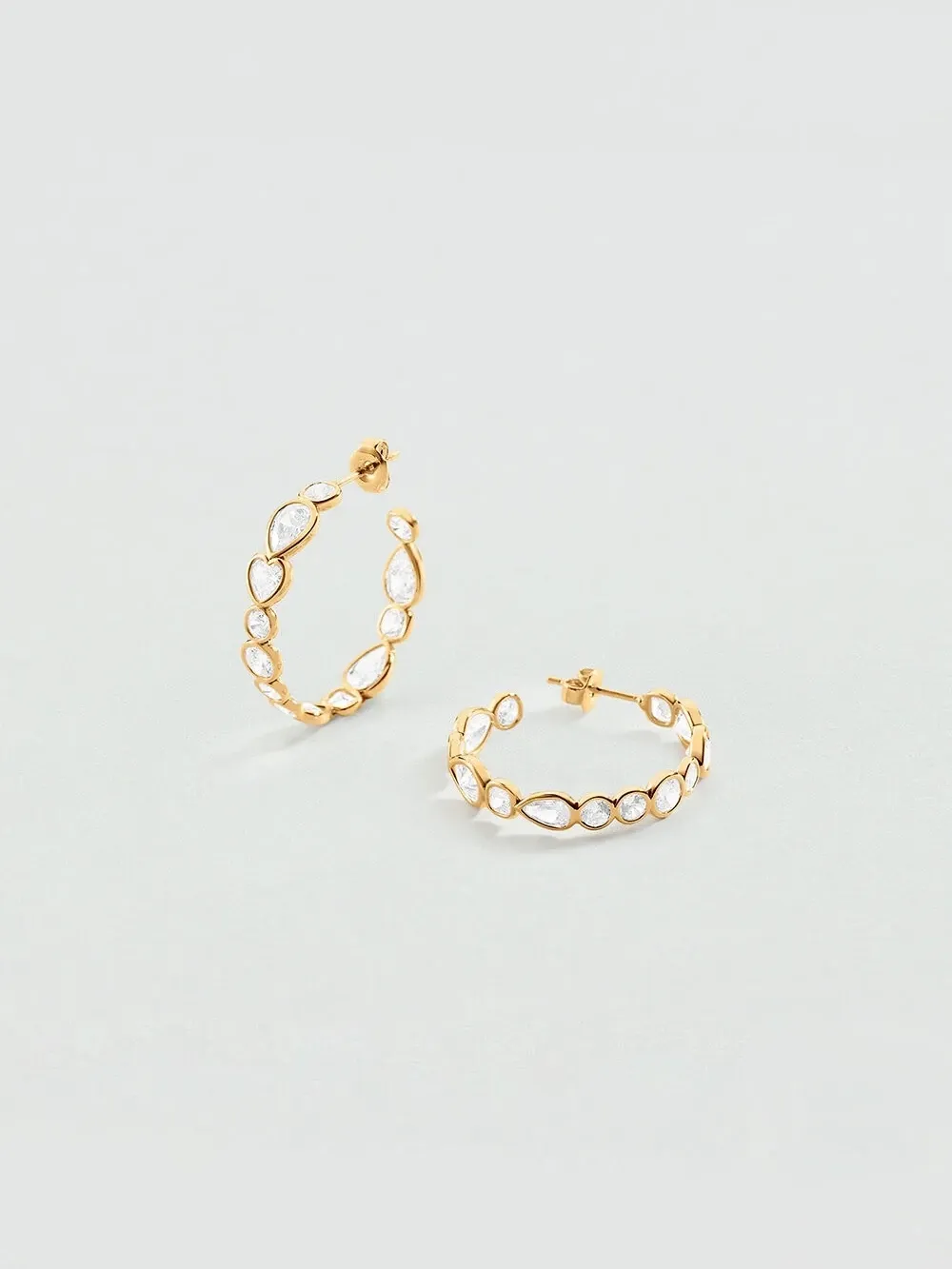 Las criollas Candy de Agatha Paris están diseñadas para quienes disfrutan de pendientes con personalidad y movimiento. Fabricadas en metal con baño de oro, se adornan con circonitas de diferentes formas que cuelgan del aro, creando destellos variados al caminar. El resultado es un pendiente ligero, divertido y muy favorecedor, perfecto para dar vida a looks básicos con un solo gesto.