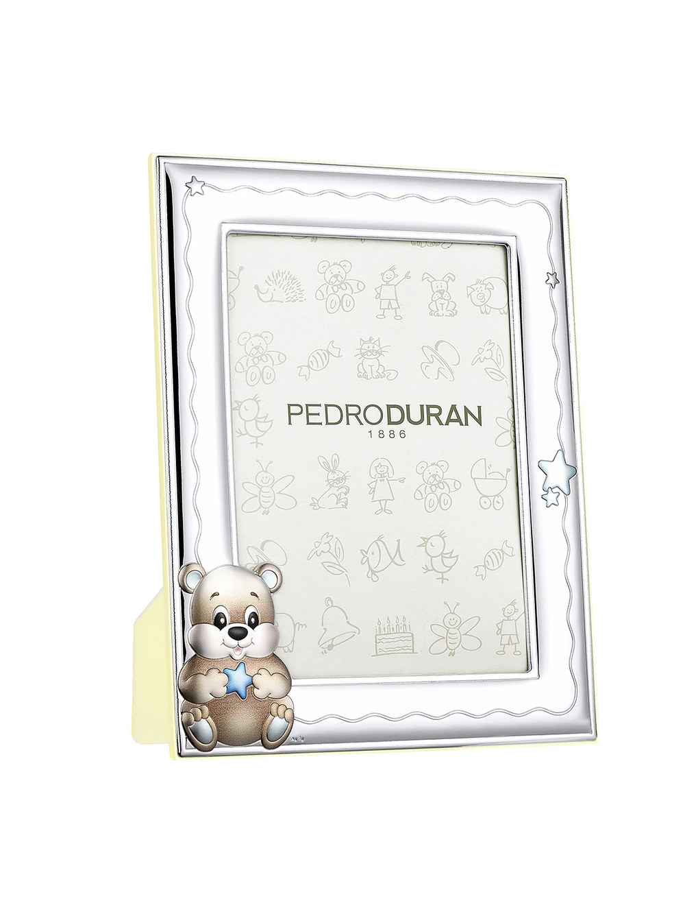 Marco Osito con estrellas azul 9×13 con acabados de alta calidad, ideal como detalle de nacimiento o bautizo. Una pieza pensada para perdurar en el tiempo.