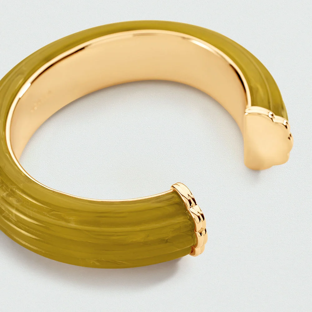 Pulsera Agatha Paris de la colección Madeleine con una silueta actual y muy combinable. Presenta pulsera rígida con resina caqui, un detalle que aporta textura y personalidad a la muñeca. Es una pieza cómoda de llevar, perfecta para dar un acento chic tanto a looks sencillos como a conjuntos más cuidados. Su diseño encaja muy bien sola o combinada con otras joyas de la misma línea. Mantiene el aire parisino de Agatha Paris y ofrece una presencia cuidada sin perder frescura ni facilidad de combinación.