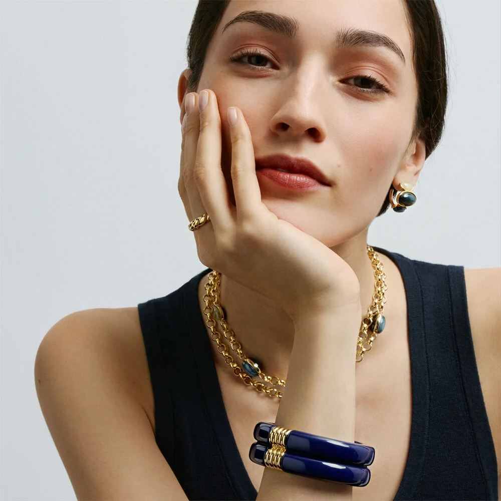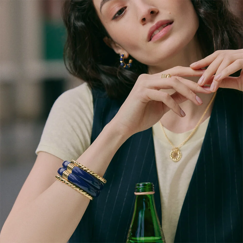 Esta pulsera de Agatha Paris presenta una silueta rígida y articulada con un acabado dorado de estilo contemporáneo. Pulsera rígida y articulada de acetato y acabada en oro. Una apuesta de lo más favorecedora para esta temporada. Son ideales para llevar en tu día a día y dar un toque perfecto de color a tus looks. Es una pieza versátil, cómoda de llevar y perfecta para actualizar tu joyero con un diseño con personalidad. Es una pieza versátil, cómoda de llevar y perfecta para actualizar tu joyero con un diseño con personalidad.