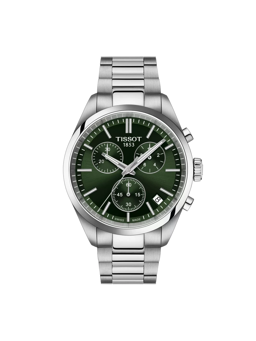 Reloj cronógrafo Tissot PR 100 cuarzo 40 mm, caja de acero y esfera verde T1504171109100