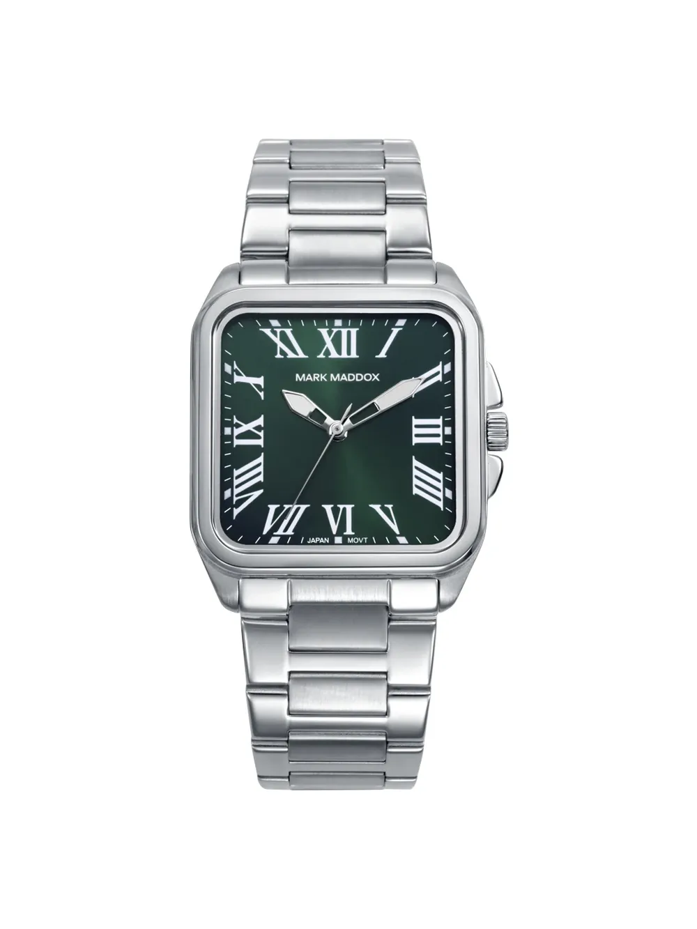 metalizado. Movimiento de cuarzo analógico de precisión. Brazalete con eslabones sólidos unidos mediante pasadores.
