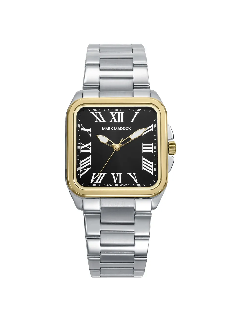 Movimiento de cuarzo analógico fiable de fabricación japonesa. Brazalete de acero con eslabones articulados que se
