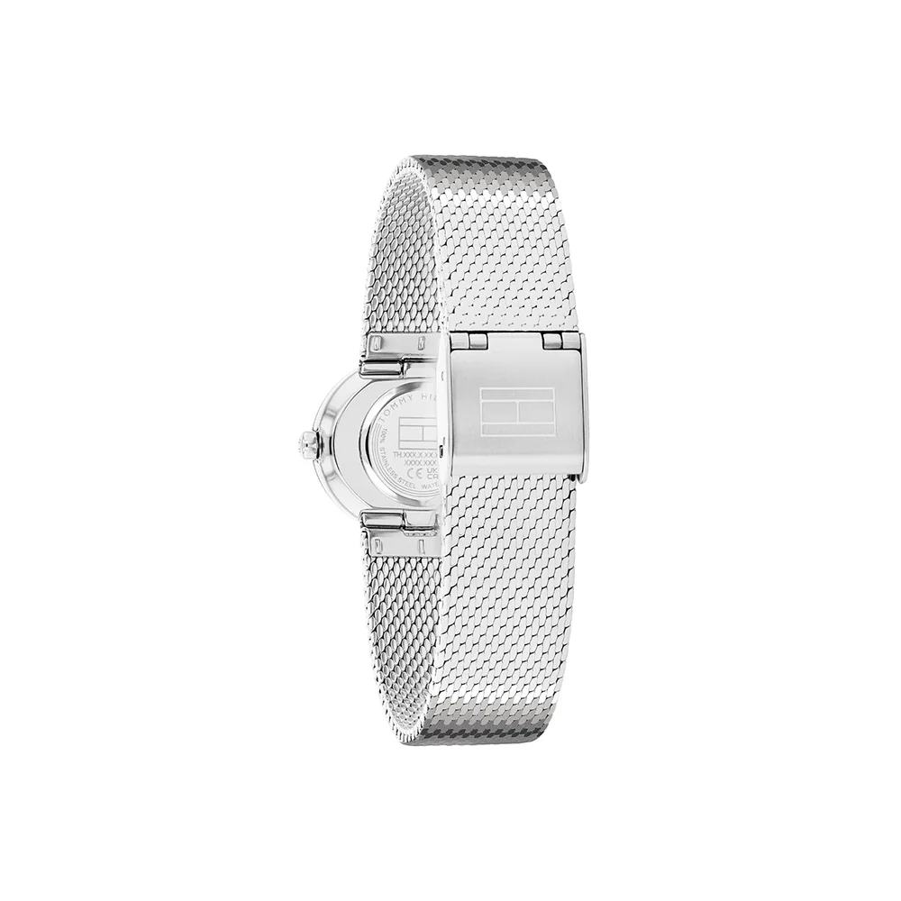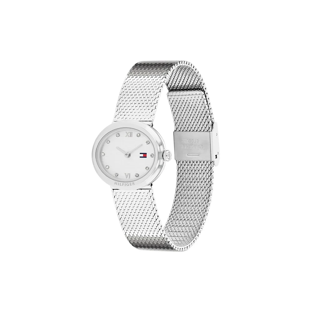 Elegancia sutil en un formato oval que estiliza la muñeca. Este reloj Tommy Hilfiger para mujer presenta caja de acero con un delicado bisel y una esfera limpia realzada por índices de cristal.
