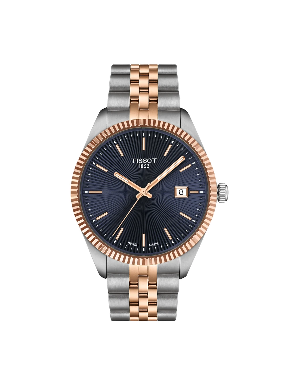 Reloj Tissot Ballade 40 mm bicolor PVD rosa, esfera azul, cuarzo con EOL T1564102204100