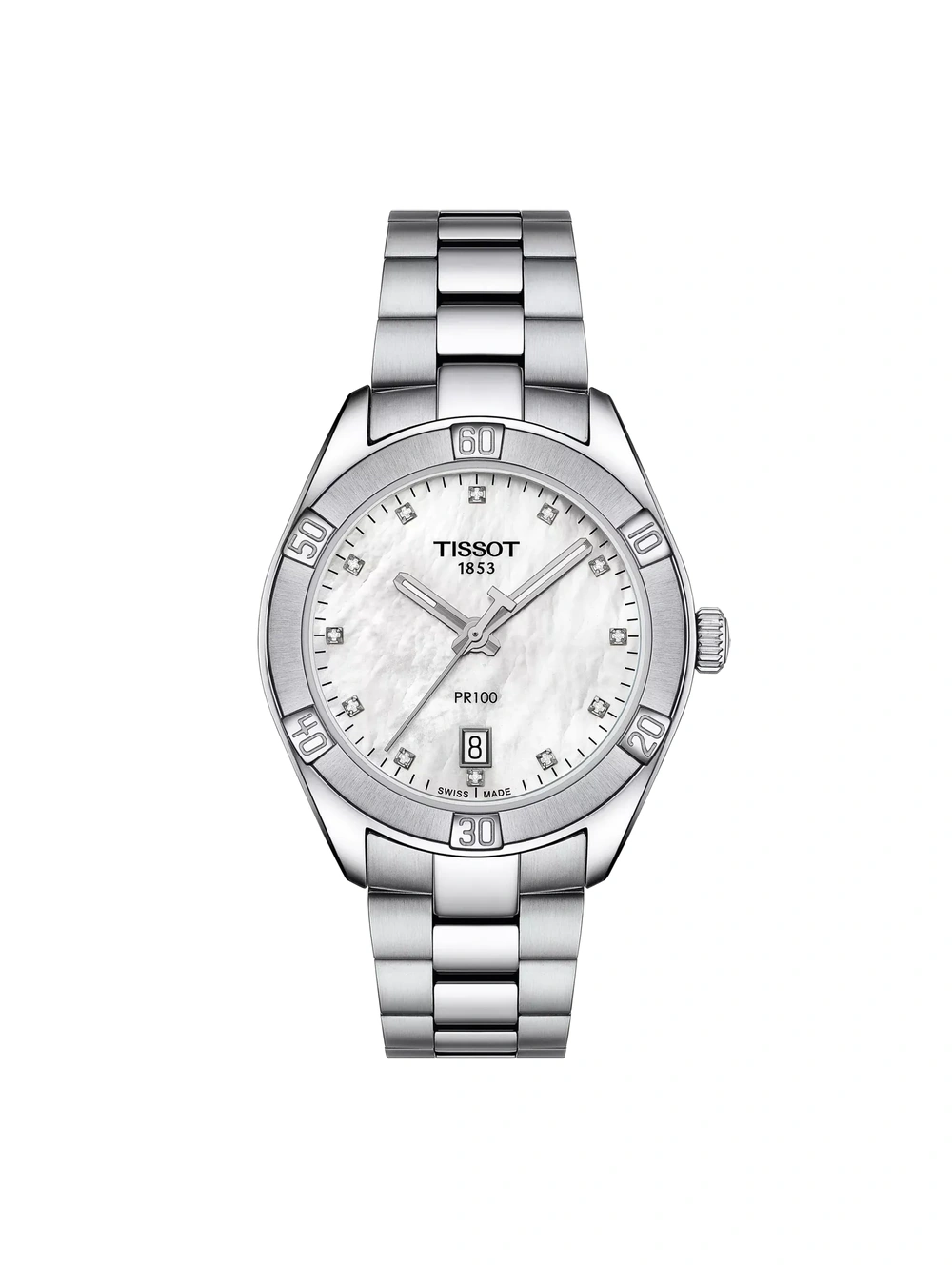 Reloj Tissot PR 100 Sport Chic 36 mm acero, nácar con diamantes, cuarzo y zafiro T1019101111600