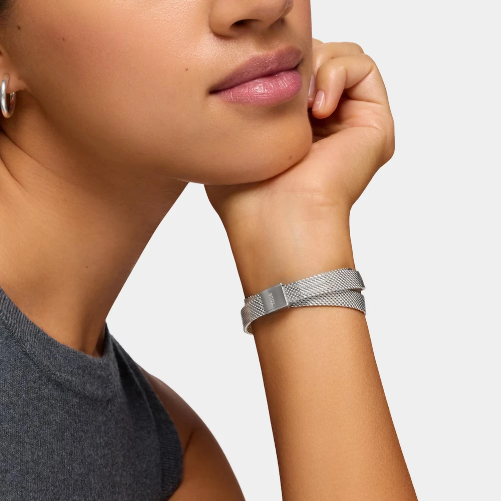 El tiempo se convierte en joya cuando el nácar, el acero dorado y los iconos de la firma se funden en una sola pieza. Tradición relojera y espíritu joyero se abrazan en un diseño de silueta rectangular que eleva la muñeca a símbolo de presencia y estilo. Reloj analógico Icon Time Embraced. Caja y brazalete de malla milanesa de acero dorado con motivos oso y corazón. Medidas: 16×18,7 mm. Cristal mineral plano rectangular. Esfera de nácar. Resistente al agua 3 ATM. Movimiento de cuarzo japonés. Cierre de malla milanesa.