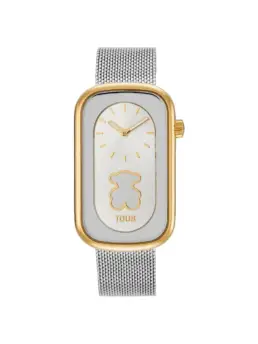 Inspirado en el icónico oso de TOUS, este reloj cuenta con una caja de acero dorado y un brazalete de acero inoxidable. La esfera de nácar con la silueta del oso grabada lo convierte en una pieza única y especial. Con resistencia al agua de 3 ATM, cristal mineral y cierre ajustable, es el accesorio perfecto para cualquier ocasión.