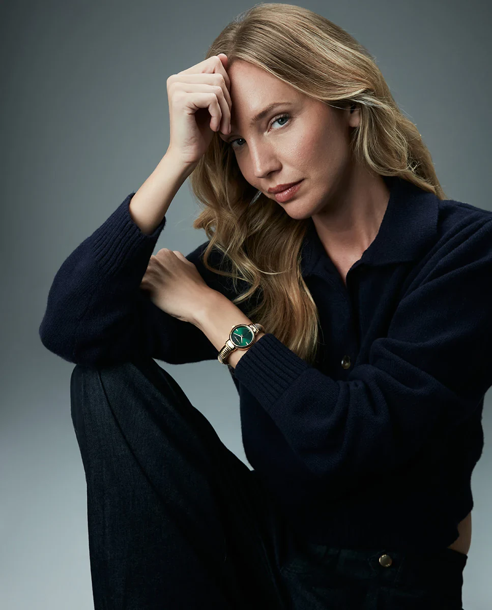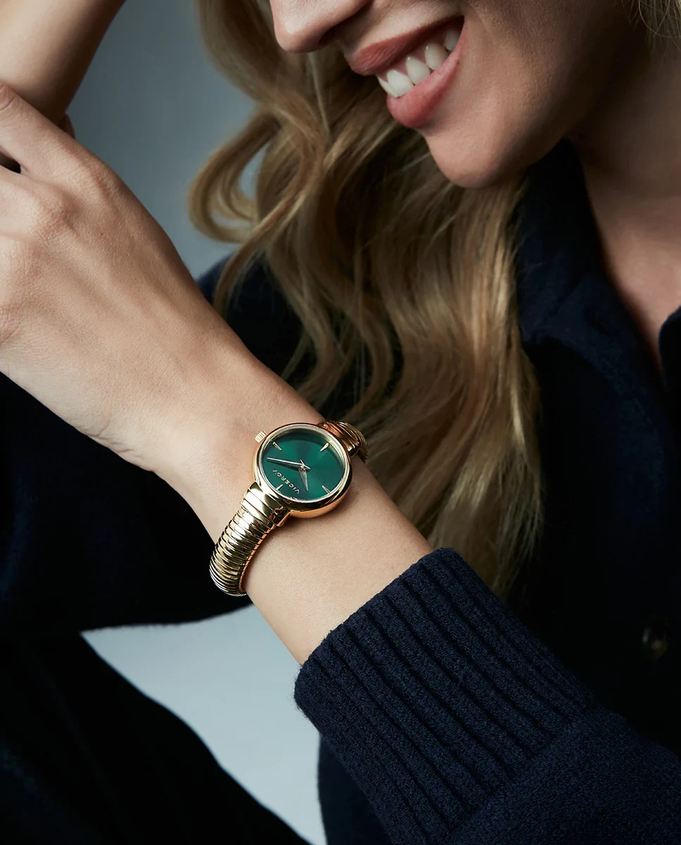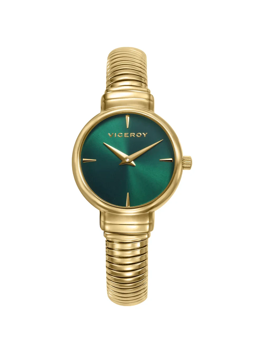 La colección Chic de Viceroy presenta este reloj con personalidad audaz en acero inoxidable dorado. La esfera verde contrasta elegantemente con índices y agujas tipo barra en tono dorado, creando un look vibrante y contemporáneo.