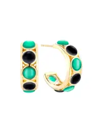 Pendientes de plata dorada Durán Exquse con ágata verde y ónix – Colección Dots – 00513369