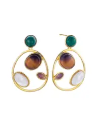Pendientes de plata dorada Durán Exquse con cuarzo ahumado, piedra luna y calcita – Edición Limitada – 00513571